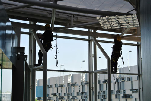 실내의 내부유리 및 그밖에 크리닝의 작업들은 무척이나 까다롭습니다. 특히 장비조차 허락하지 않는 장소에서 크리닝을 요구할때는 더더욱 그렇습니다. 탑로프에서는 로프접근기술을 보유하고 있는 기술력이 뛰어난 로프공이 문제적 난관을 해결해드립니다.